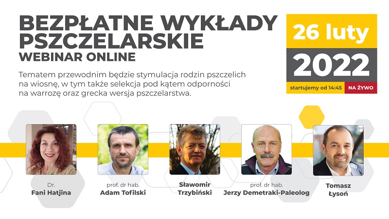 Zapraszamy na bezpłatne wykłady pszczelarski w formie online, które odbędą si26 lutego o godz.15:00
