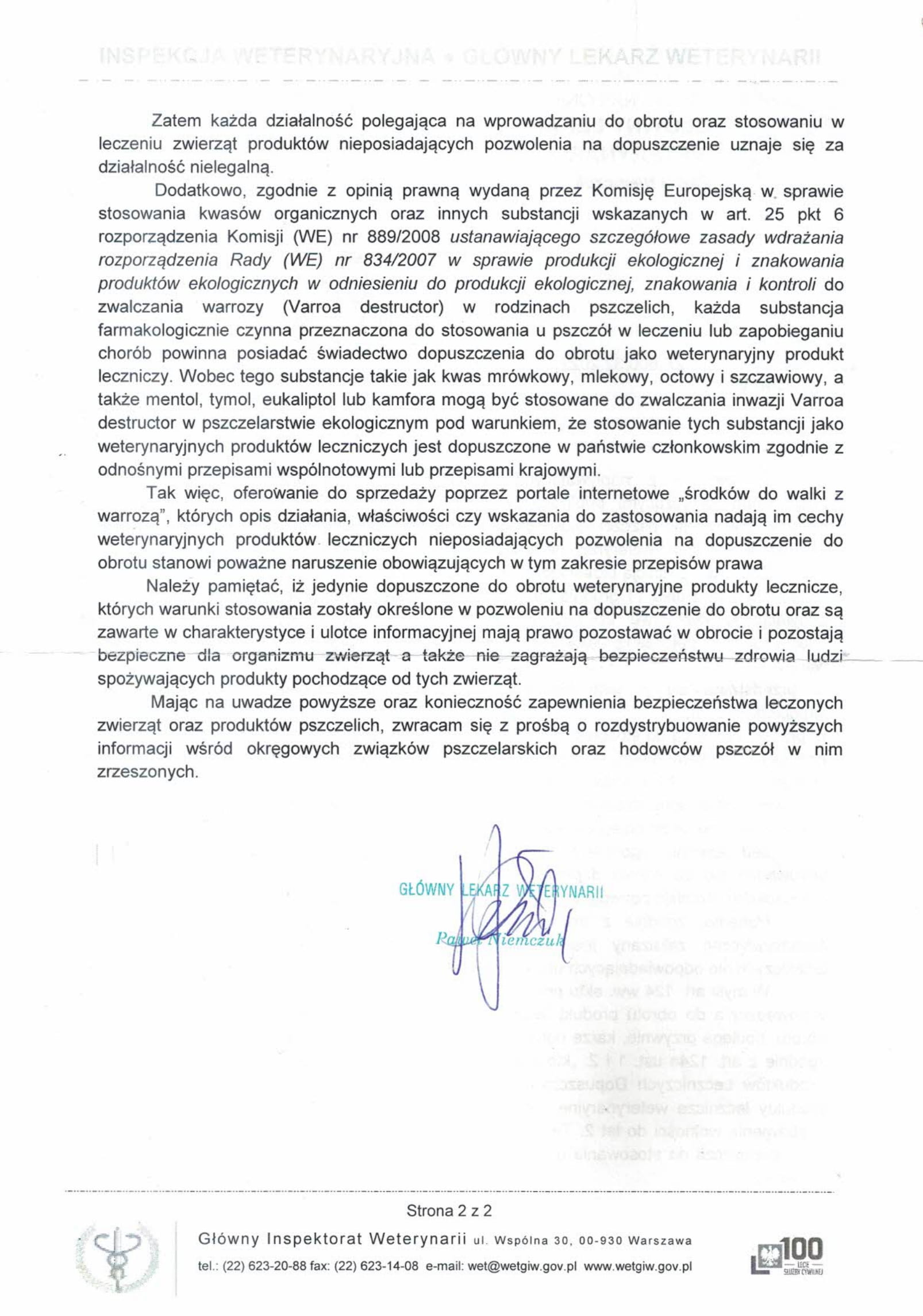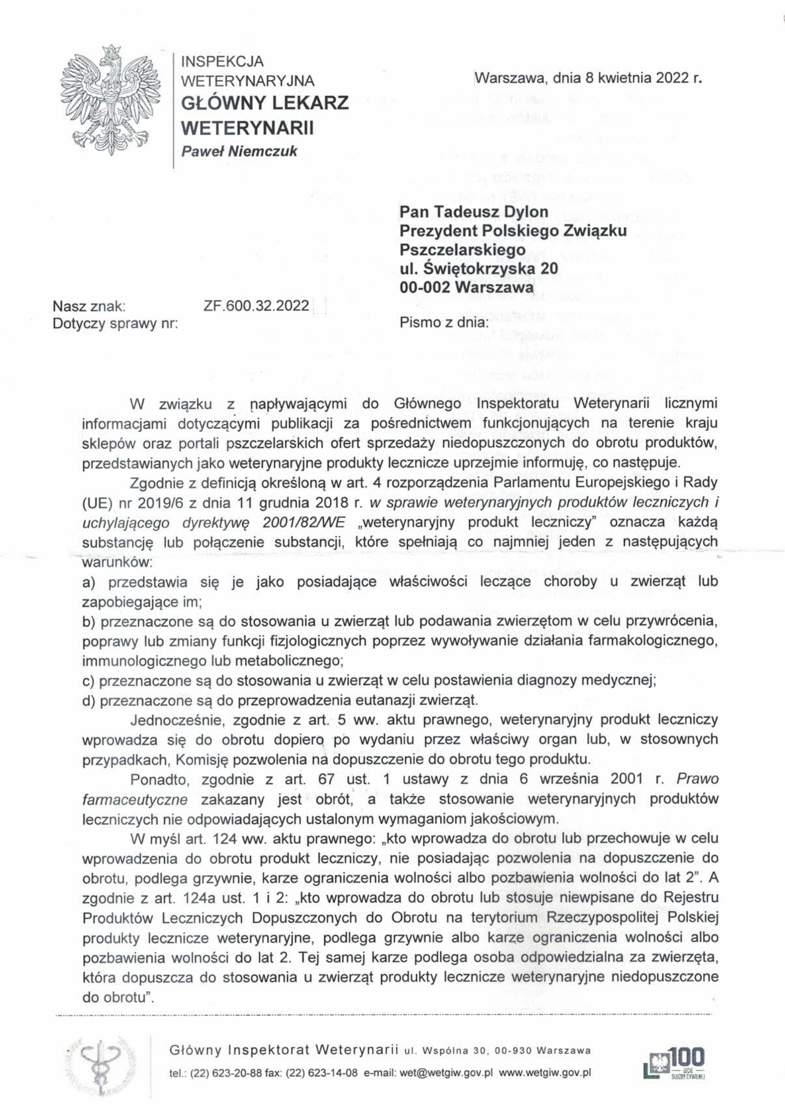 W załączeniu pismo Głównego Lekarza Weterynarii odnośnie leczniczych produktów weterynaryjnych, proszę o zapoznanie się z dokumentem.