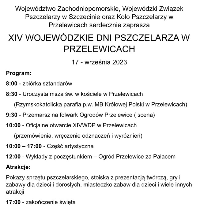 XIV WOJEWÓDZKIE DNI PSZCZELARZA PRZELEWICE